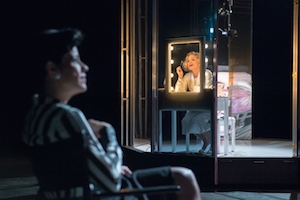 As in previous months, April sees several works by Rainer Werner Fassbinder being staged in European theaters. In the Gaußstraße, the smaller stage attached to Hamburg’s Thalia Theater, a theater adaptation of VERONIKA VOSS has been running since February 2014, in which Bastian Kraft directs Victoria von Trauttmannsdorff as a formerly popular film star trying unsuccessfully to make a comeback in post-war West Germany. High on morphine, she strolls through a labyrinth of mirrors and video screens. This production is also notable for the fact that, in contrast to Fassbinder’s other popular films, Veronika Voss, the second last film he directed, is seldom seen in a stage adaptation.